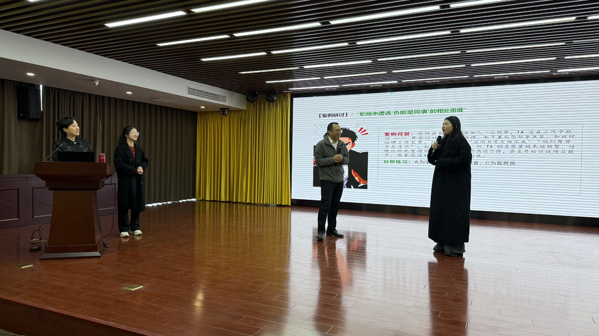 蒋洁理事长从“认知筑基,让好心态为美好人生赋能”“持续成长,增强应对变化的心理韧性”“授人玫瑰,在正能量传播中收获幸福”三个方面,讲述了心态与幸福、与事业成败的关系,使大家懂得阳光心态不是 “没烦恼”,而是 “会面对”,了解消极心态对身体健康的影响,知道塑造好心态要从“接纳自己”开始。蒋老师还教授大家如何通过认知调节转变思维模式,通过情绪管理科学疏导负面情绪,通过合理管控高效化解工作压力,通过锤炼韧性加强自我心理建设的各种方法。最后进一步拓展,带动大家提升格局,在能量传递中收获能量,在真诚付出中收获内在的满足。整个讲座过程中,蒋老师坚持理论与实际相结合,案例再现与互动演练并举,讲授了一场有高度、有深度、有温度、有热度的心理健康报告。