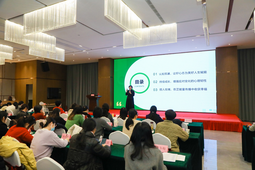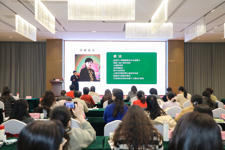 12月11日,盐城市心理健康服务协会理事长、盐城市绿洲心理咨询技术研究院院长蒋洁受市妇联邀请,为盐城市新兴领域妇联主席能力提升培训班学员讲授《永葆阳光心态,成就幸福人生》的心理健康课,全市新兴领域妇联主席代表及各县区妇联组织条线妇女干部近百人参加培训。
