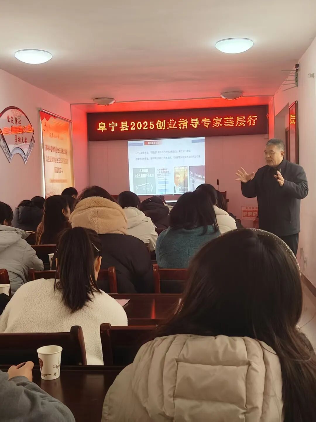 本次活动特邀江苏省创业指导专家、中国青年创业导师、盐城工学院教授卞保武,带来《创业是在价值创造基础上的资源布局》专题授课。凭借深厚的理论功底与丰富的实战经验,卞保武教授精准指出“价值创造是创业的根本,资源布局是创业的关键”这一核心观点。授课过程中,他通过解析多个典型创业成功案例,生动展示了“价值创造”与“资源布局”有机结合的实践路径;同时结合阜宁产业发展实际与创业环境特点,为返乡创业者量身定制发展建议,既有理论高度又具实操价值,现场互动频繁,反响热烈。