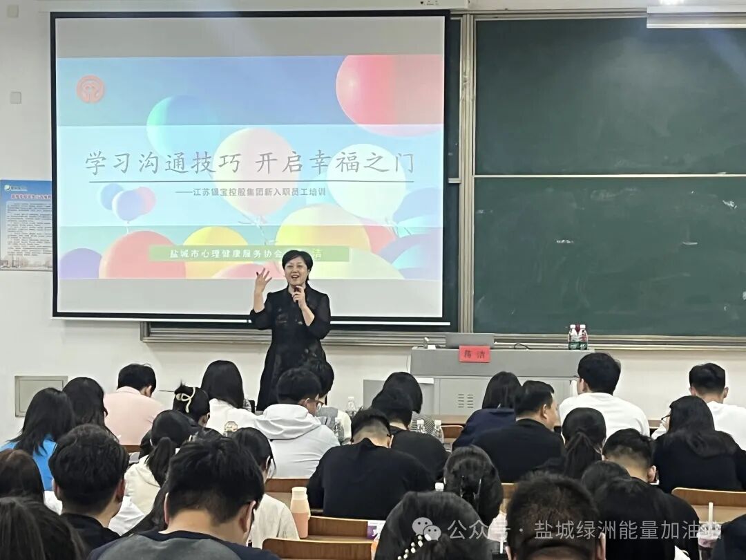 为助力新入职员工迅速融入团队、提升职场软实力,2025年10月14日下午,盐城市心理健康服务协会理事长蒋洁受江苏银宝控股集团邀请,为新入职员工带来一场别开生面的《学习沟通技巧,开启幸福之门》主题讲座。本次讲座不仅系统讲解了沟通知识,更通过独特的互动体验,为新员工的职业生涯注入了“心”的能量。